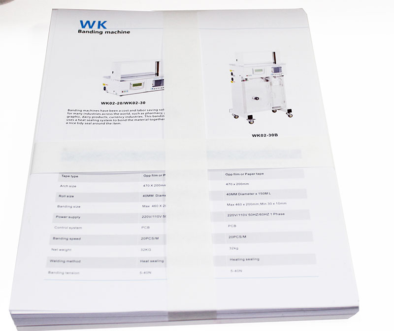 以纸带或塑料带为捆扎材料,可对印刷品A4纸类,书籍、报刊、说明书等A4纸物件进行